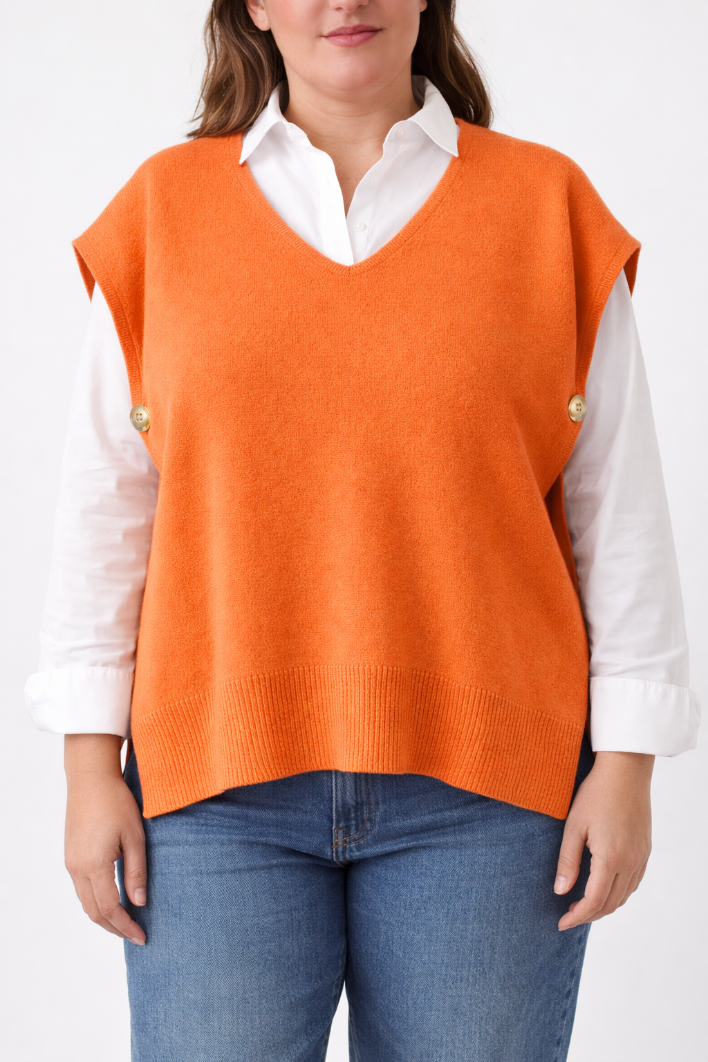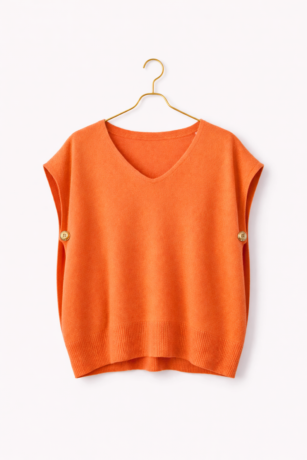 Precioso chaleco de punto abierto en los laterales con boton tipo OLD MONEY para cerrarlo. Escote en pico muy favorecedor. Diseño oversize. Muy cómodo.