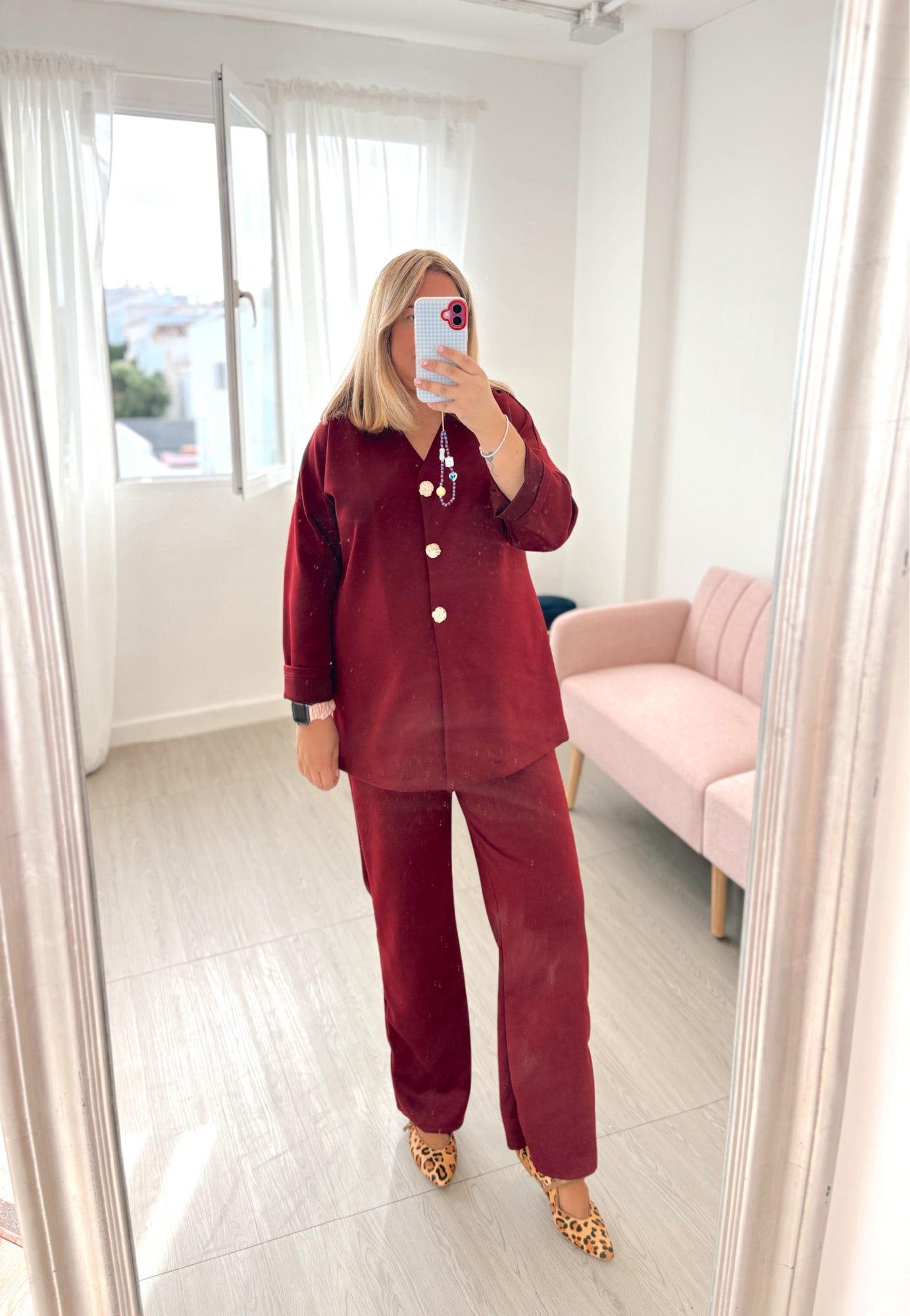 Precioso conjunto chandalero con detalle de botones dorados que lo hacen menos casual. Es ideal para combinar con cualquier tipo de calzado (desde deportivas hasta un salón).