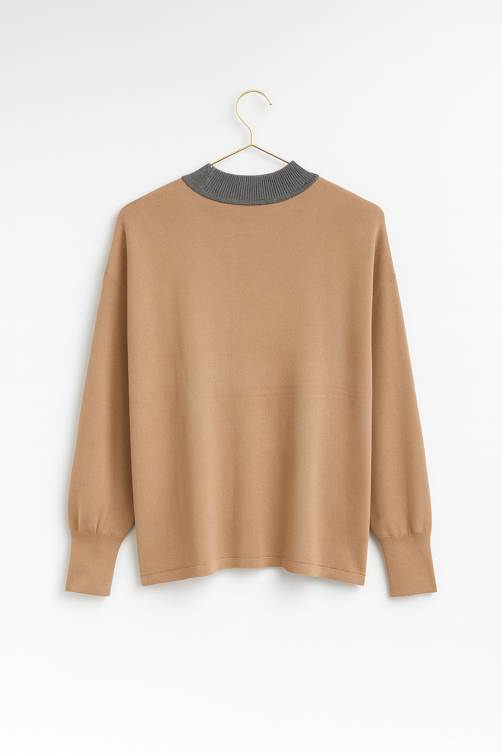 Precioso conjunto de punto con calidad premium. Sueter oversize de cuello medio y pantalón con cintura engomada y de pata ancha.