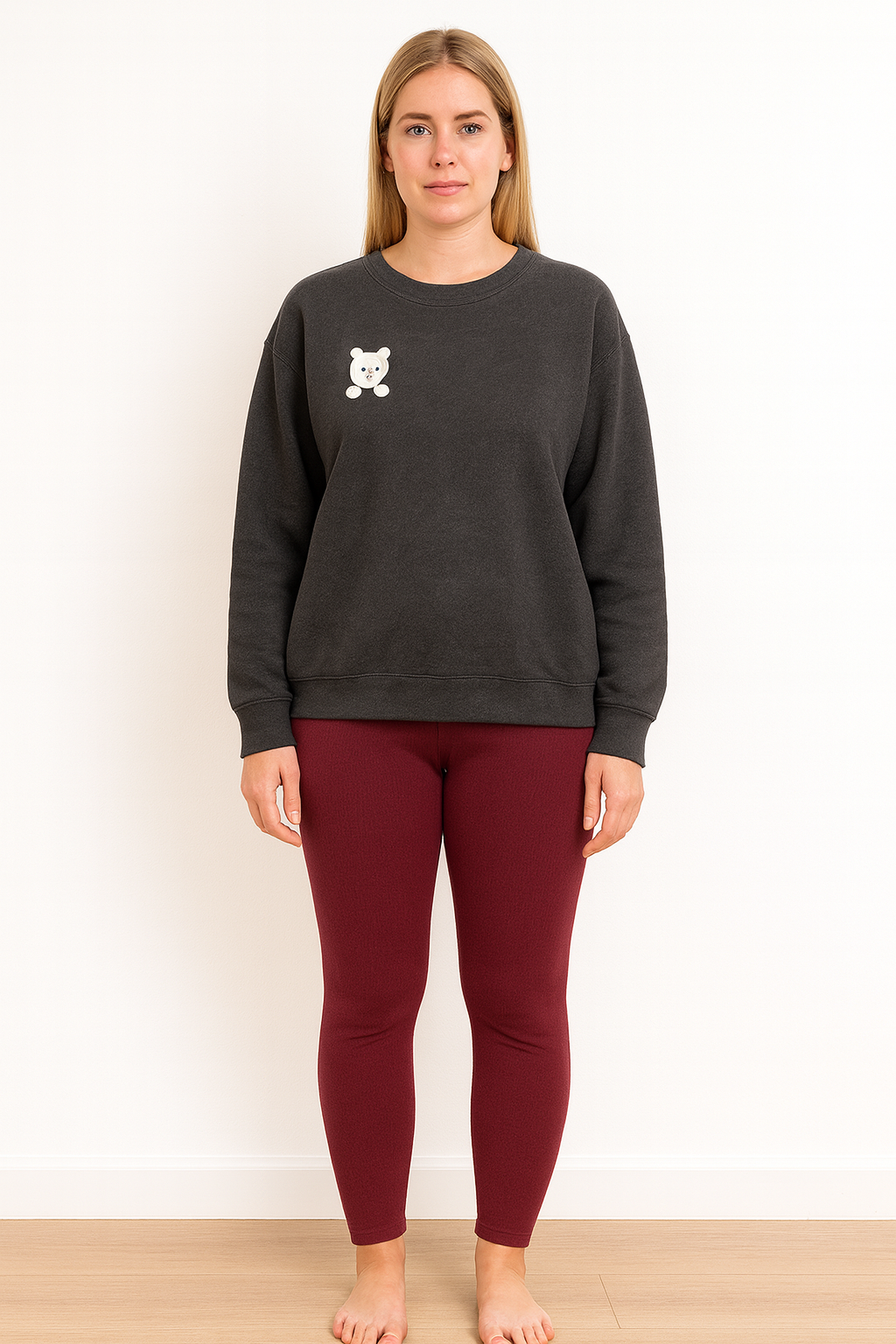 Precioso pijama o conjunto HOMEWEAR compuesto de: Sudadera amplia con pelito por dentro y pantalón tipo leggin en canalé. Es muy elástico.