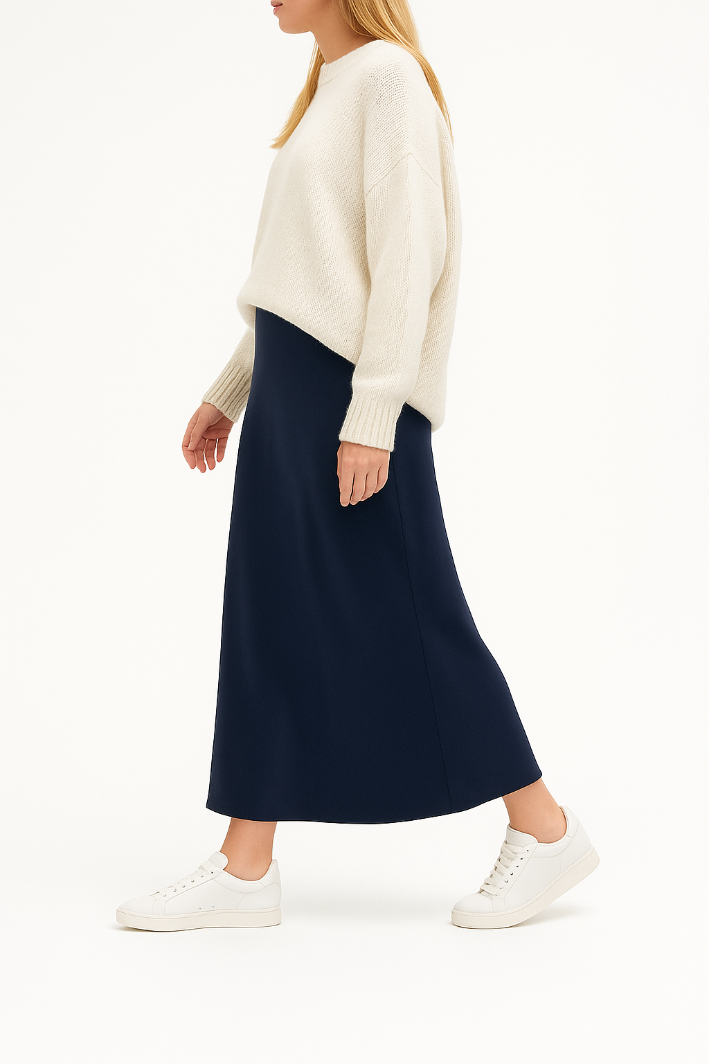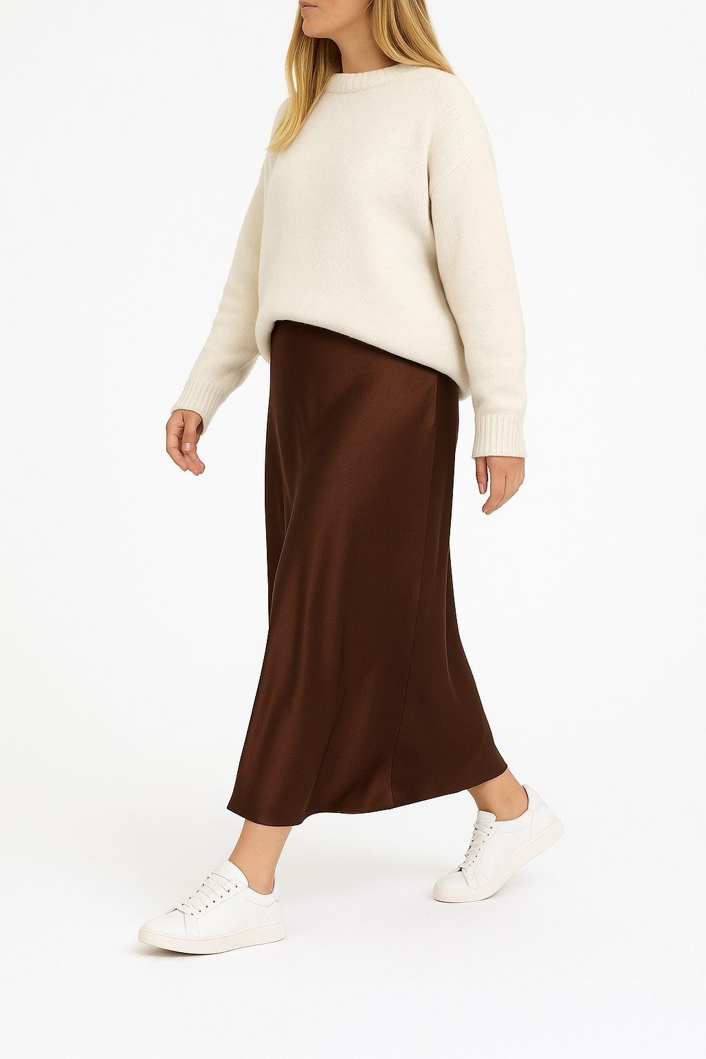 Preciosa falda satinada de calidad premium. Tiene mucha caída y no se pega a la pierna al caminar. Ribetes en el elástico de la cintura para favorecer el ajuste. Volante ligero en los bajos.
