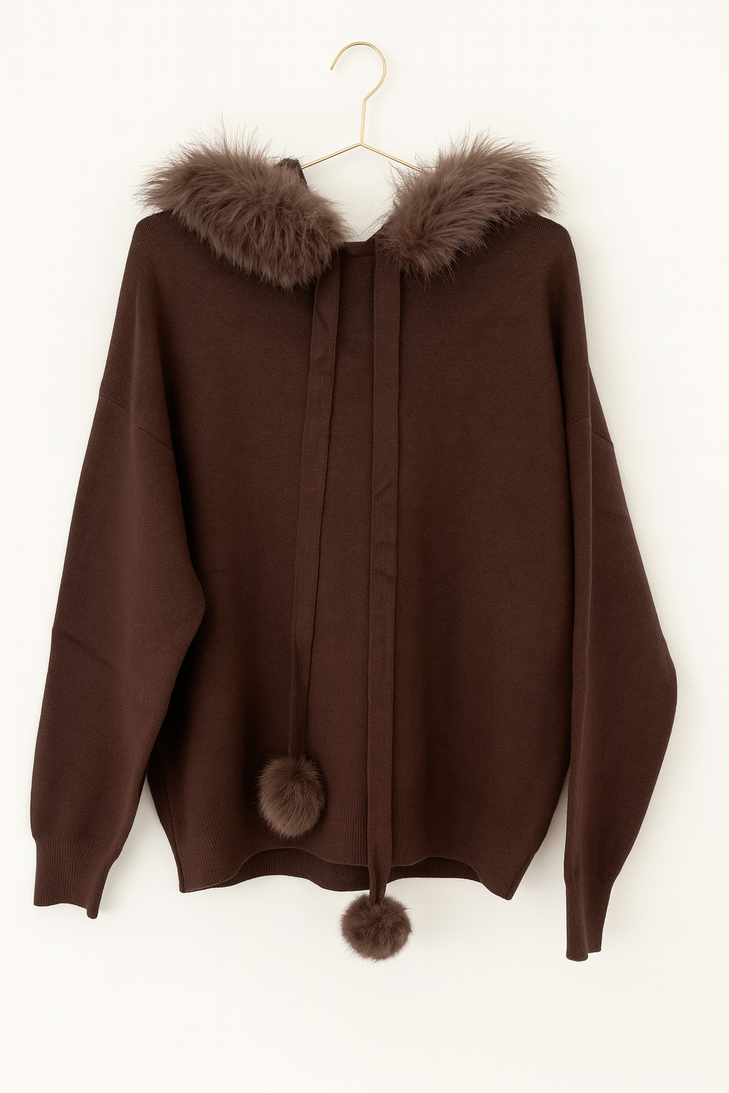 Precioso suéter de punto con calidad premium. Es amplio. Es elástico. Cuello de pelo extraible. Contorno de pecho 120 cm.